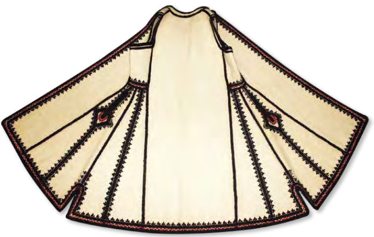 | Members of Ensamble Makedonija wearing traditional Kotorci costumes | A garment made from kenarno platno |
