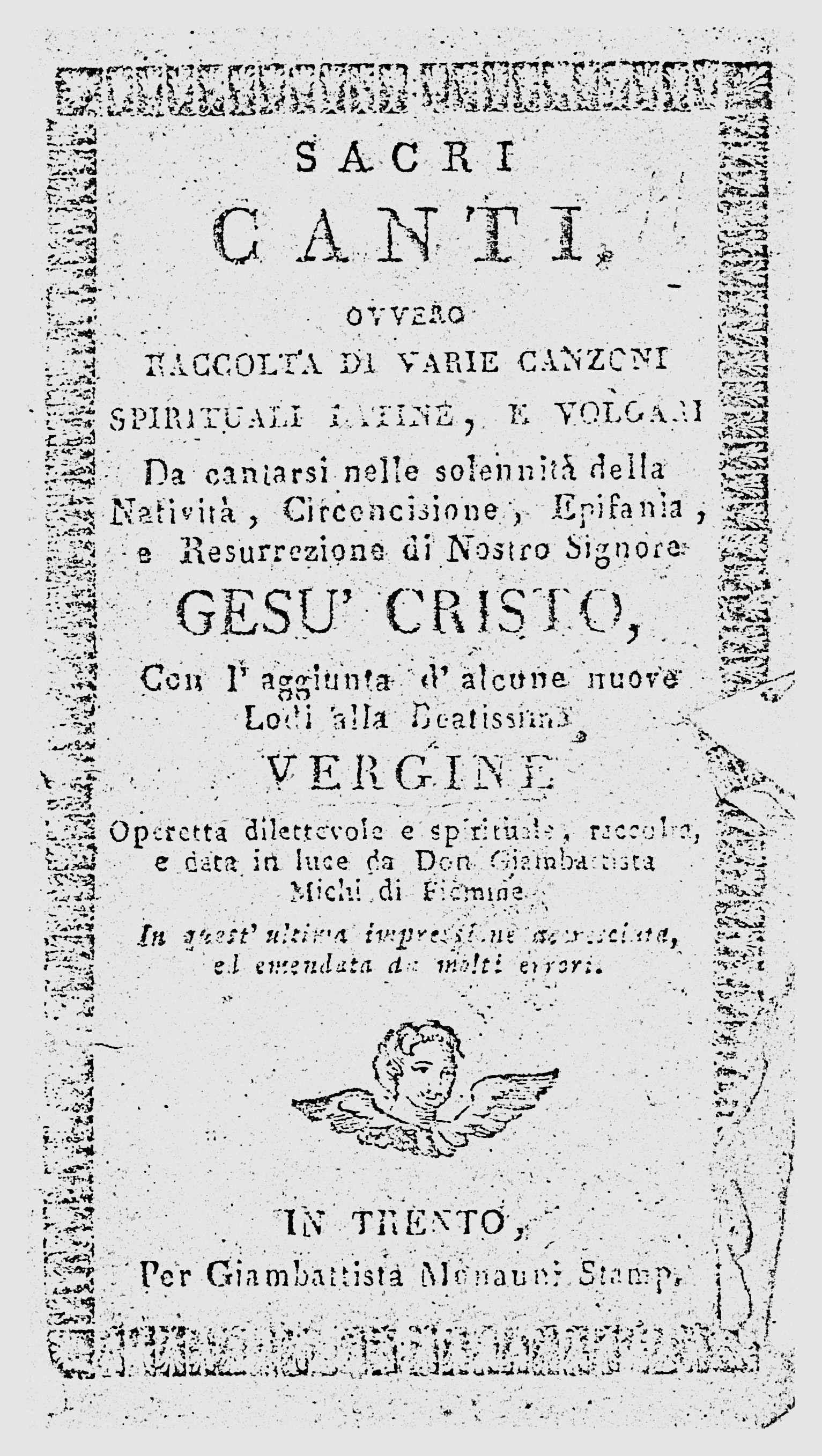 დონ ჯოვანი ბატისტა მიჩი დაიბადა ტესეროში 1651 წლის 9 მაისს და გარდაიცვალა 39 წლის ასაკში 1690 წელს. რამდენადაც კრებული მიჩის სიცოცხლის პერიოდითაა დათარიღებული, შესაძლებელი გახდა დამეწყო სხვადასხვა ისტორიული წერილობითი წყაროს თანამედროვე „ზეპირი ტრადიციის“ კვლევა, რამაც, ამ შემთხვევაში, 1600-იანი წლების მეორე ნახევრამდე მიმიყვანა. თუმცა მაინც საჭირო იყო მიჩის მიერ გამოქვეყნებული სიმღერების წარმომავლობის გარკვევა. წიგნის შესავალში, რომელიც ეძღვნება „ღვთისმოსავ მკითხველს“, მიჩი ბუნდოვნად მიუთითებს სიმღერების წყაროზე: „მე გადავწყვიტე შემედგინა წინამდებარე კოლექცია სასულიერო საშობაო სიმღერებისა, რომლებიც აქა-იქ იყო მიმოფანტული და რომელთაგან ზოგი ლათინურ, ზოგი კი ჩვეულებრივ ხალხურ ენაზეა“. |