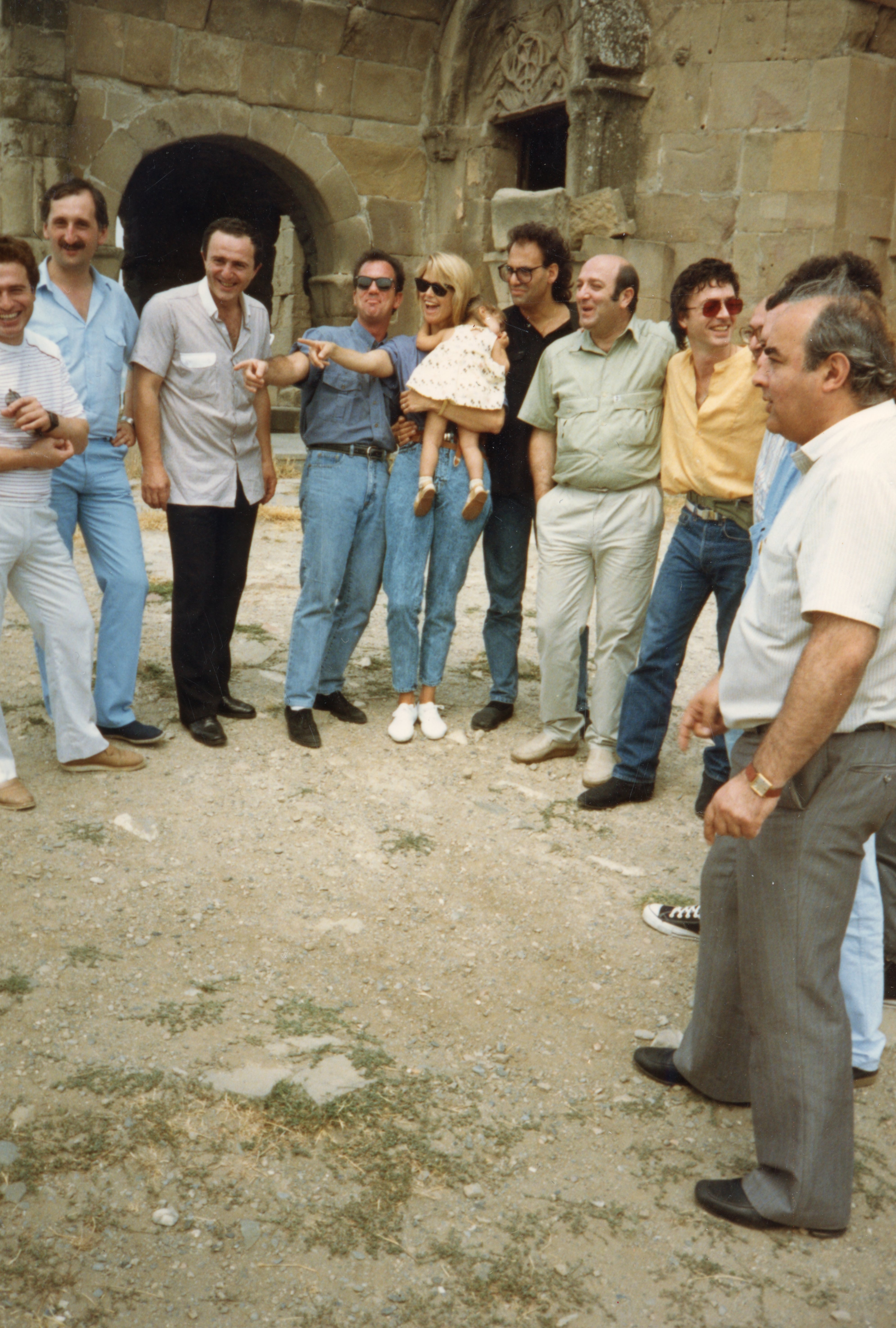 როკვარსკვლავი ბილი ჯოელი, მისი მეუღლე ქრისტი ბრინკლი და ქალიშვილი ალექსა რეი ჯოელი ქართველ მასპინძლებთან ერთად. ივლისი, 1987