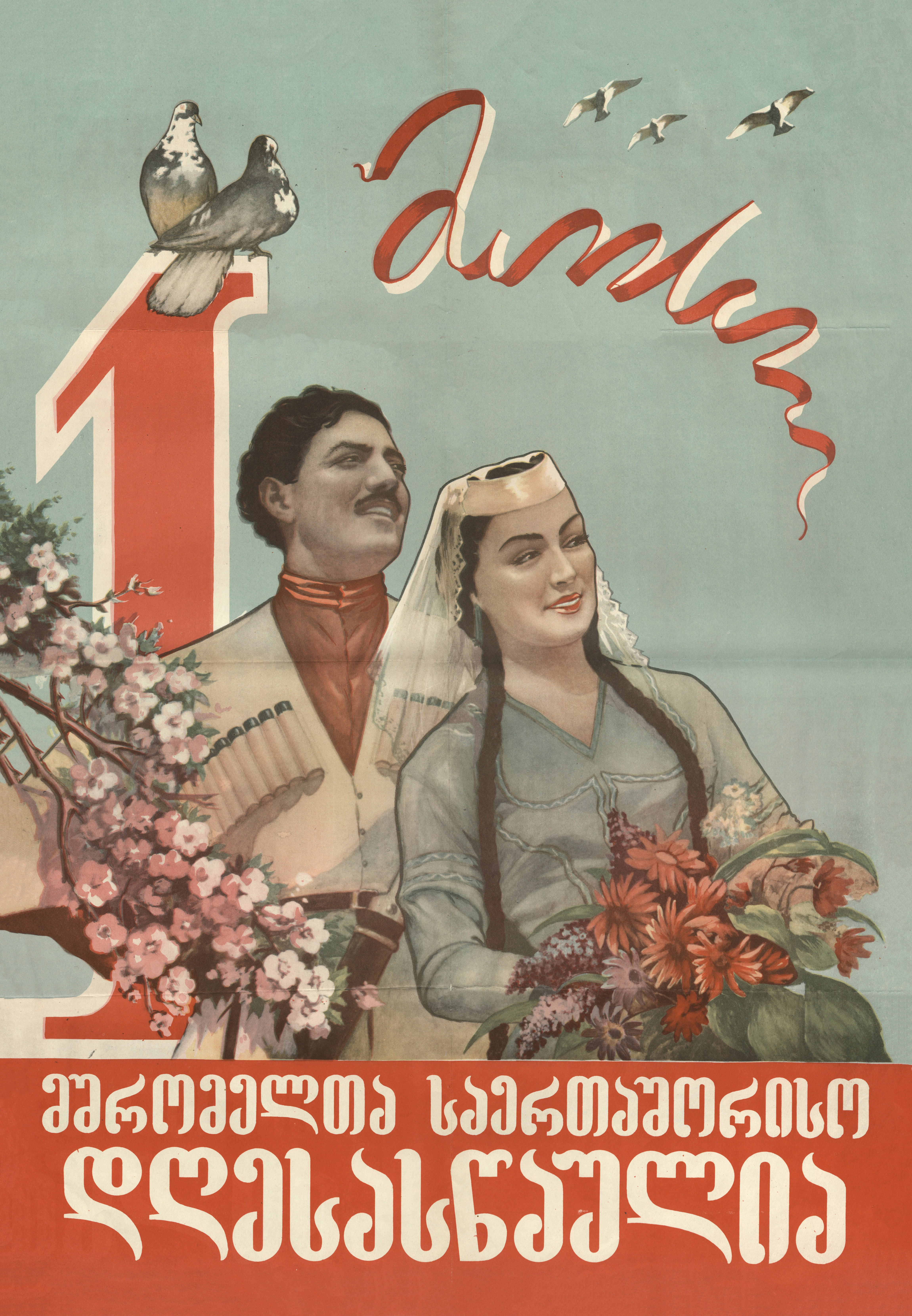 1 მაისი მშრომელთა საერთაშორისო დღესასწაულია. საზეიმო პლაკატი