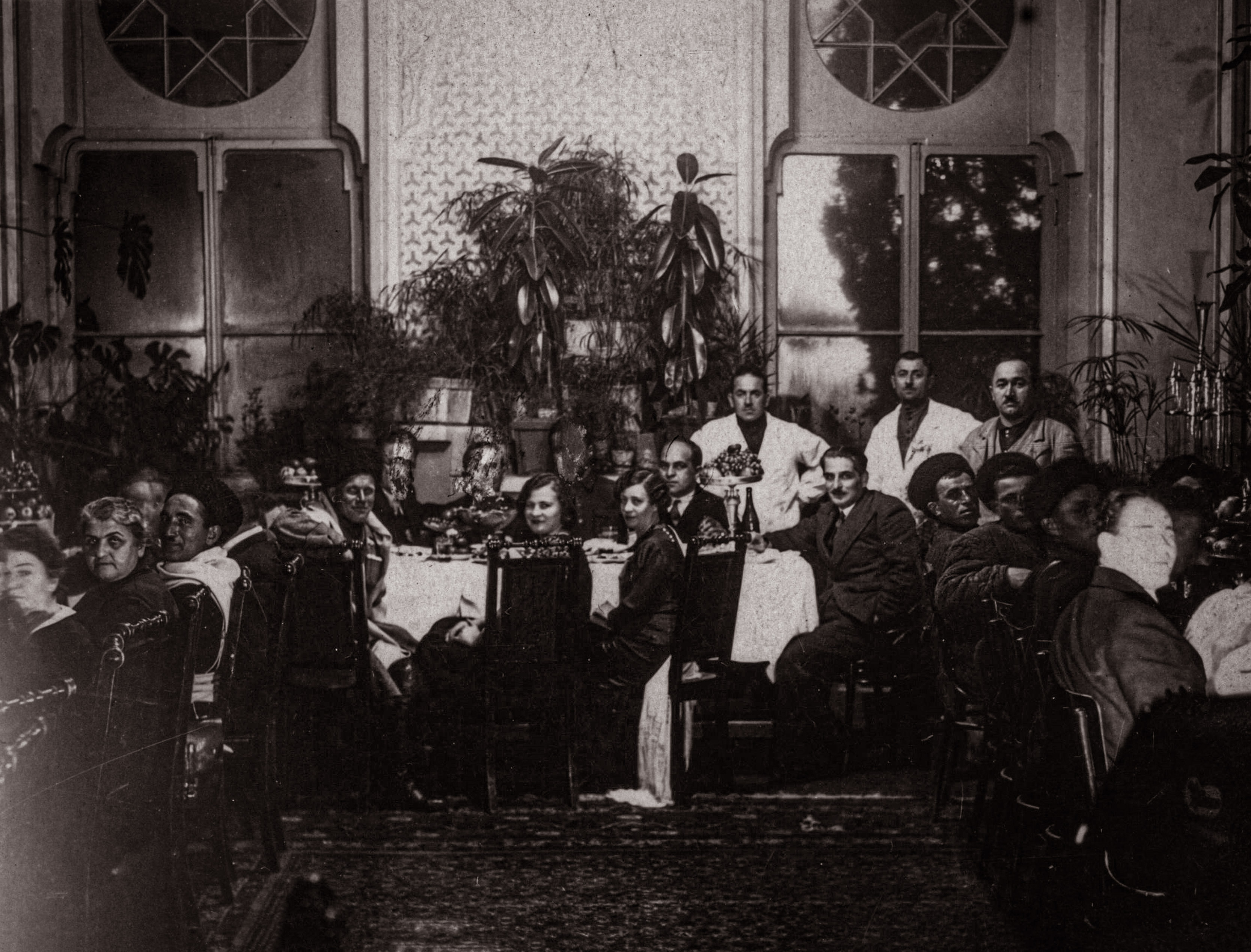 თბილისის ცენტრალური არქივის აკაკი ჭყონიას პირად ფონდში დაცული დაუთარიღებელი ფოტო. ფოტოზე საგანგებოდ არის გადახაზული აკაკი ჭყონიას გვერდით მსხდომთა სახეები.